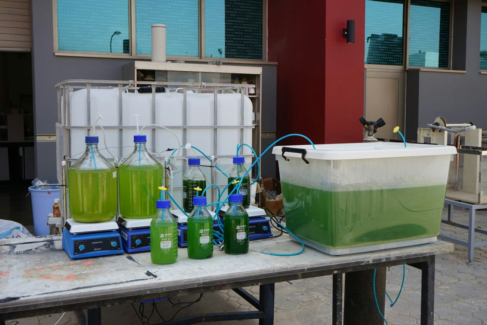 It’s here that a team of scientists are working on using algae to capture carbon dioxide: a technology that could, if they can scale it up, make some kind of a dent in the UAE’s significant carbon emissions.