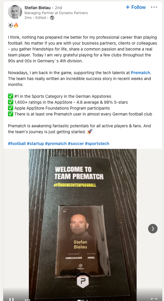 We also use our angels to amplify some proud moments for us, like when we became the number one app in Germany. We had a coordinated campaign with our angels to share the news on LinkedIn (Example 1, Example 2) and increase awareness. And finally, there might be specific questions we know one angel can answer.