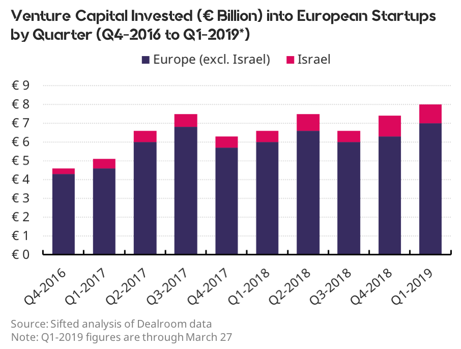 In the first quarter of 2019, European startups raised a record amount of venture capital investment. That’s the key takeaway from this Sifted Chart of the Week.