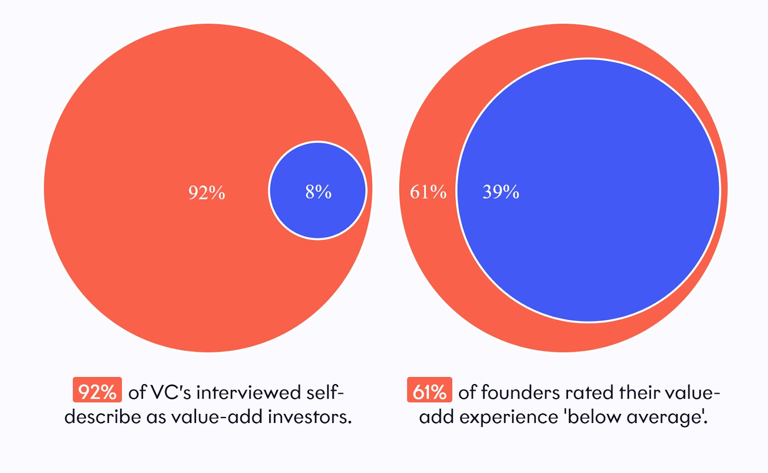 92% of VCs interviewed described themselves as value-add investors, but 61% of founders said the VCs they worked with brought less added value than they’d promised.